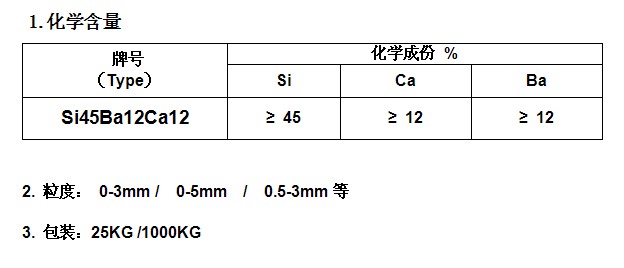 產(chǎn)品用途:硅鋇鈣合金是鋇系合金中高效新型復合合金,是煉鋼的脫氧劑、脫硫劑、還兼有脫磷的作用;也是鑄造中的孕育劑和變質(zhì)劑。